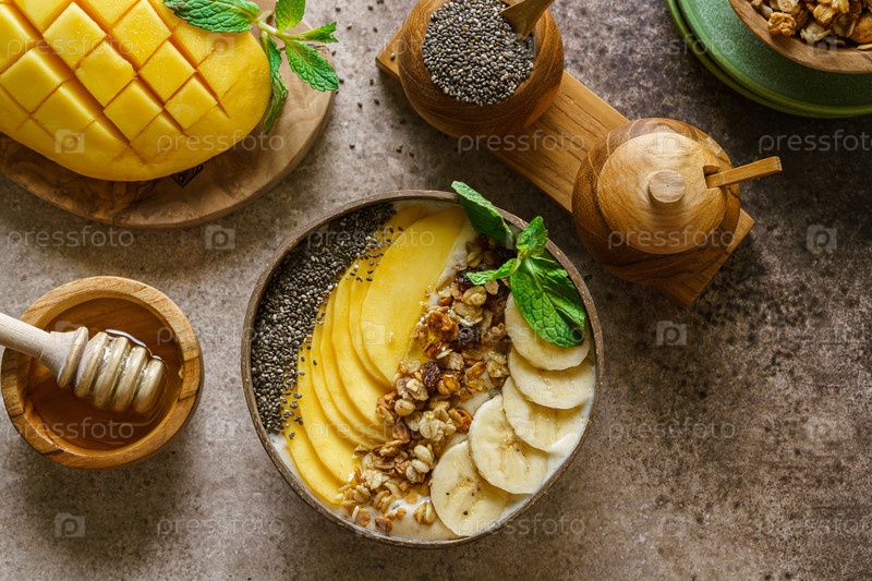 Чаша для смузи с банановой гранолой и семенами манго