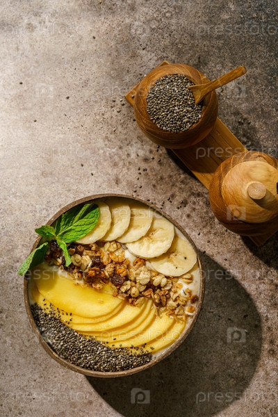 Чаша для смузи с банановой гранолой и семенами манго