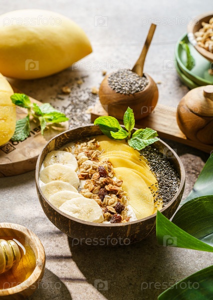 Чаша для смузи с банановой гранолой и семенами манго