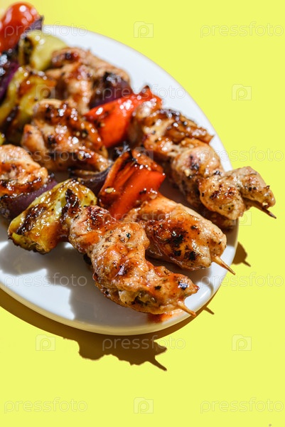 Кебабы с курицей и овощами на колючке
