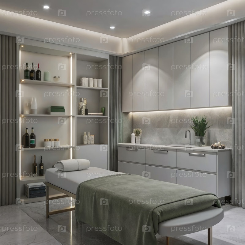 Роскошная комната для ухода за кожей с мягким освещением и массажным столом