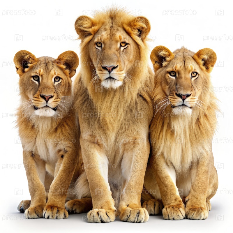 Три льва, сидящие вместе на белом фоне