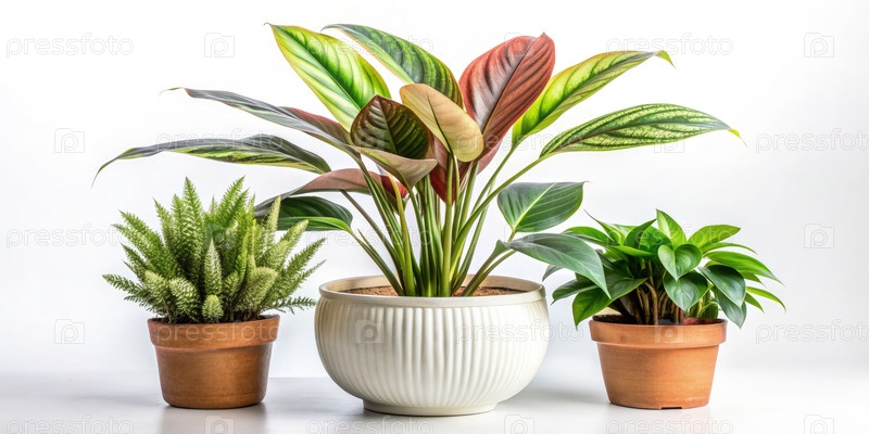 Три горшковых растения на белом фоне