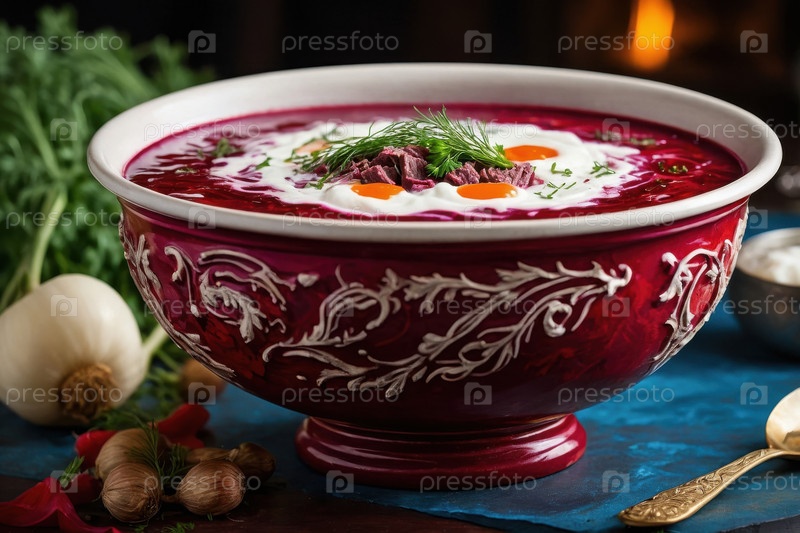 AI Generative Традиционный украинский борщ-суп в миске ужин обед, овощи вегетарианская кухня
