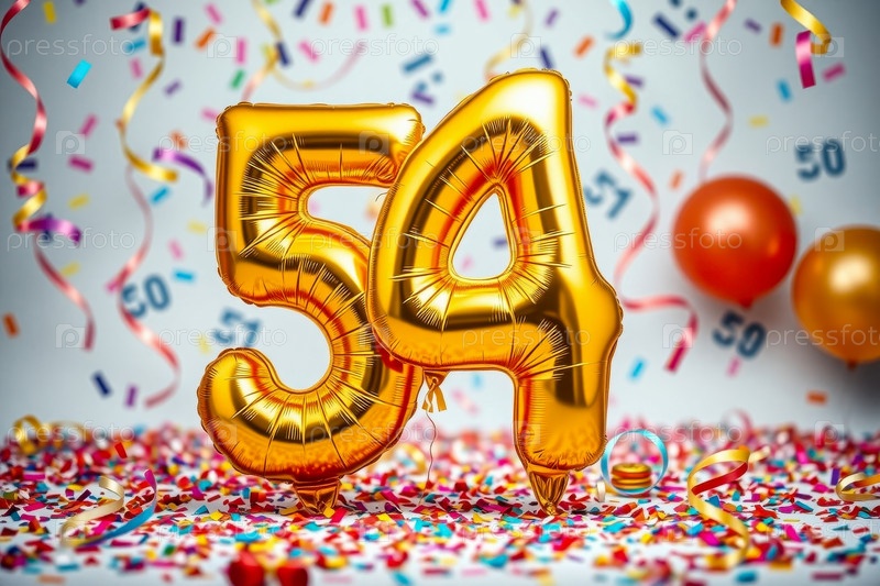 Гелий день рождения воздушный шар формы номер пятьдесят четыре, золотые буквы фигура 54 праздник праздничный фон декор