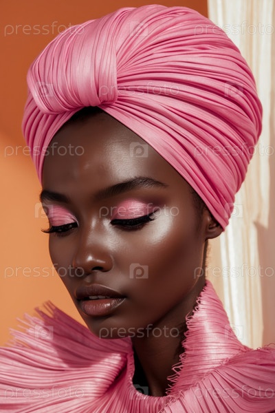 ИИ генеративный портрет молодой женщины естественно чистый помада макияж, модная модель красоты в розовом костюме