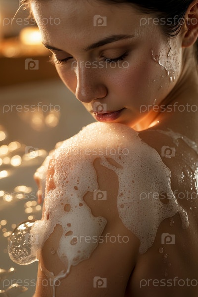 Женщина моется мылом из штанги натуральные органические ароматические косметические средства ручной работы пенообразование AI Generative