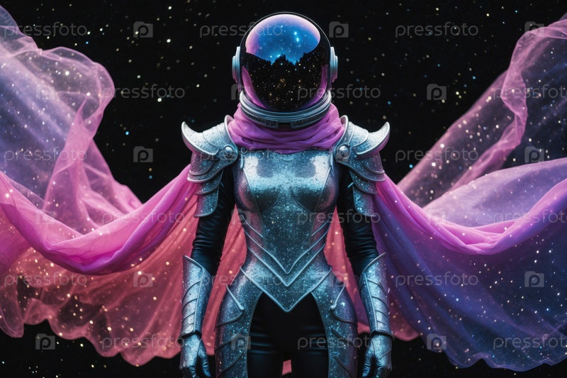 AI Generative Женщина-гуманоид в футуристическом космическом костюме, человек на будущем научном фантастическом завтрашнем фоне