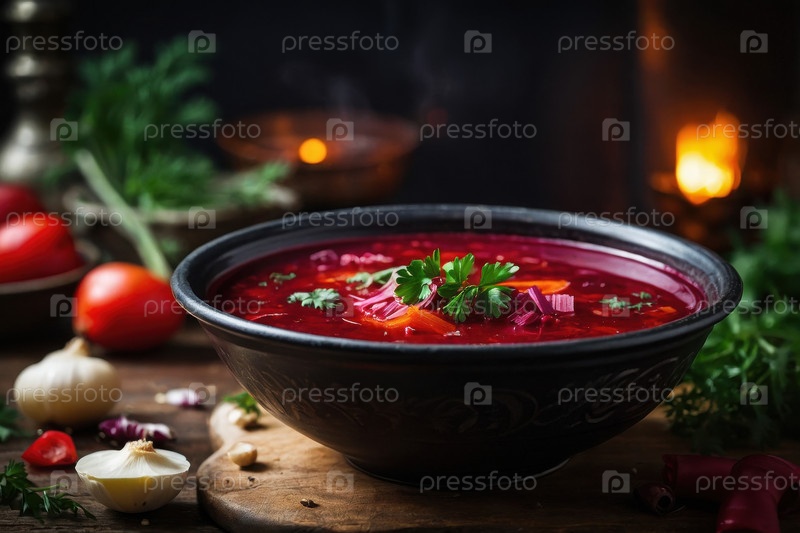 AI Generative Традиционный украинский борщ-суп в миске ужин обед, овощи вегетарианская кухня