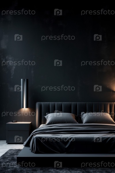 ИИ генеративный современный уютный интерьер спальня квартирная комната черный цвет, комфортный дизайн дома