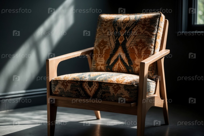 Модное уютное деревянное текстильное кресло в гостиной, элементы интерьера Мебель AI Generative