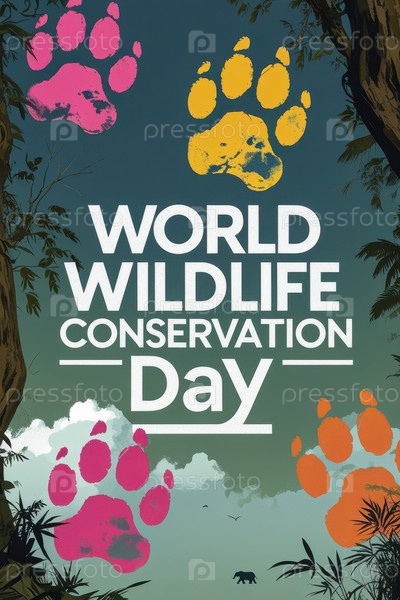 Поздравительная открытка международный праздник Всемирный день дикой природы, защита природы флоры и фауны AI Generative