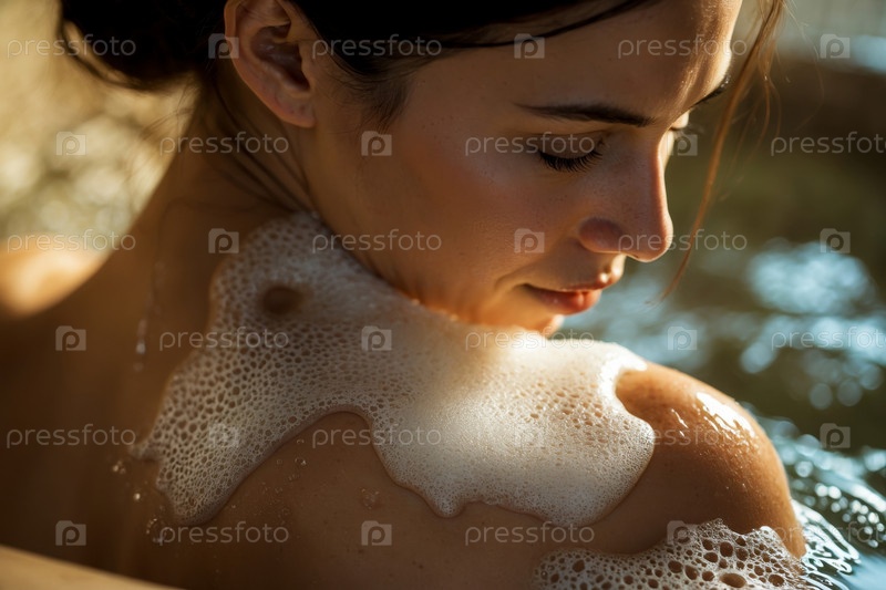 Женщина моется мылом из штанги натуральные органические ароматические косметические средства ручной работы пенообразование AI Generative