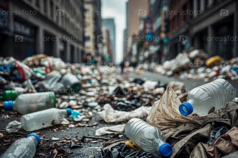 Генеративный ИИ Загрязнение окружающей среды городской придорожной улицы, мусорно-мусорных мешков и свалок на полигоне в городе
