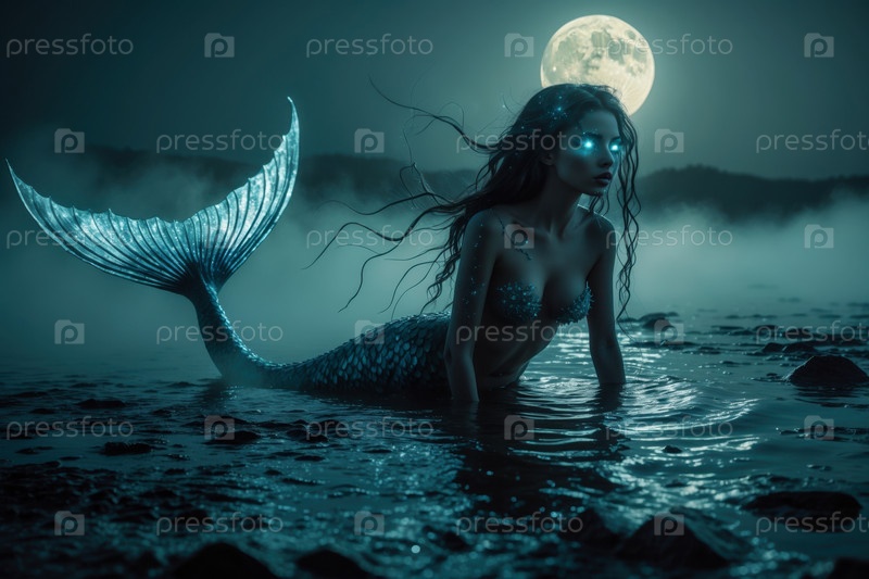 AI Generative Fantasy портрет молодой красивой женщины волшебная модель, русалка в море из сказки