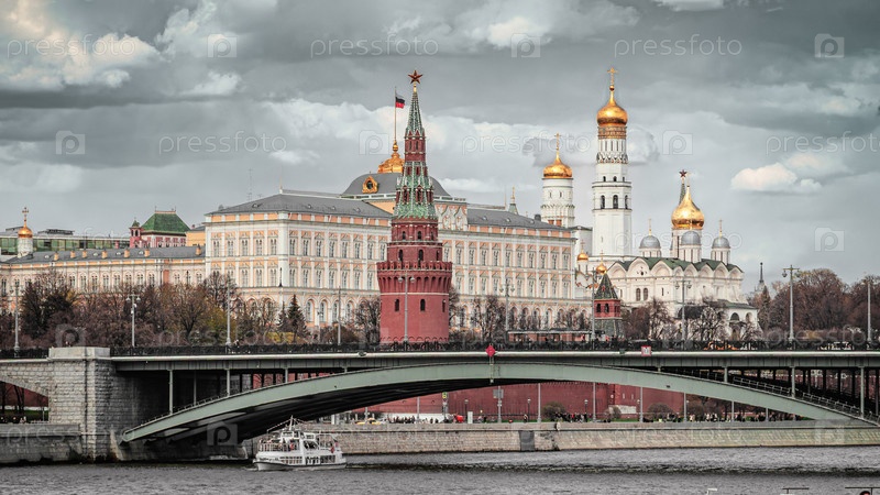 Москва, Россия. Вид на Кремль и мост над Москвой рекой