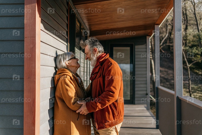 Любящая старшая пара, прикасающаяся к лбу и улыбаясь, близкий портрет пожилых партнеров, разделяющих нежный момент