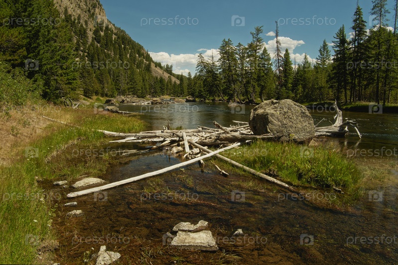 Живая сцена приключений на открытом воздухе, выделяющая величественные горы и текущую воду