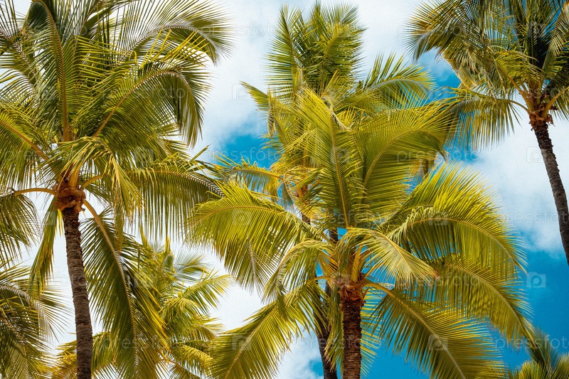 Яркий солнечный свет фильтрует через яркие пальмовые ветви, создавая спокойствие