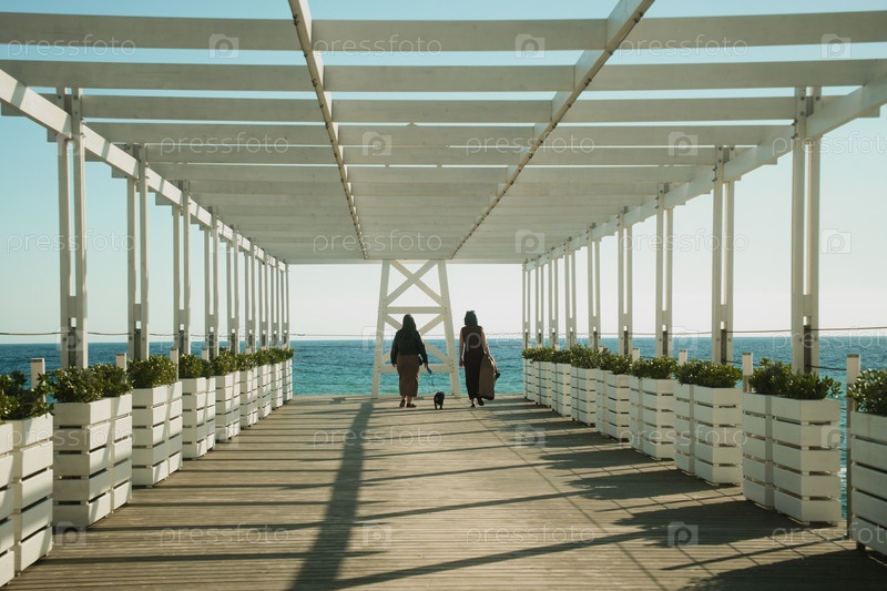 Мирная береговая тропа, украшенная растениями и бросающая длинные тени к яркому морю