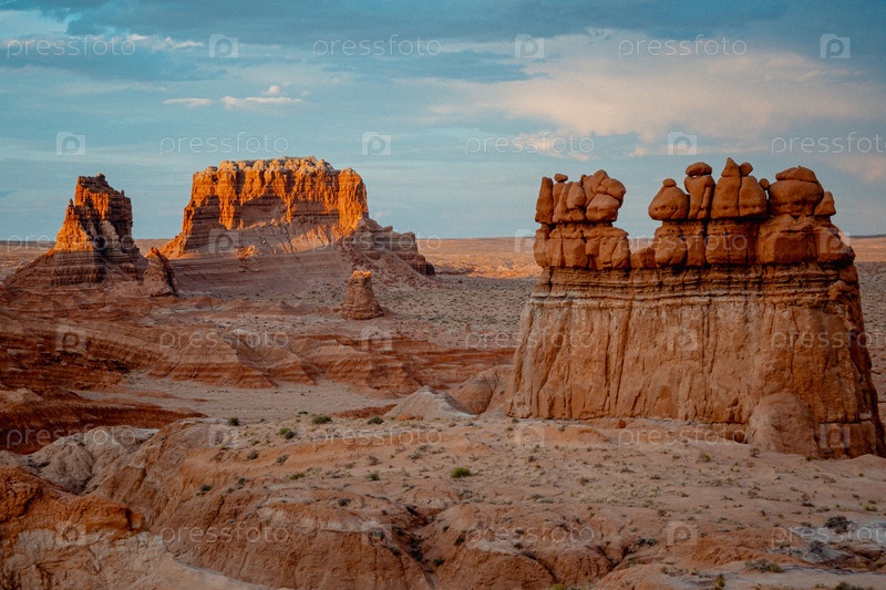 Closeup Of Layered Sandstone Columns In Rugged Desert Terrain Ближайший взгляд на слоистые песчаные колонны в грубой пустынной местности