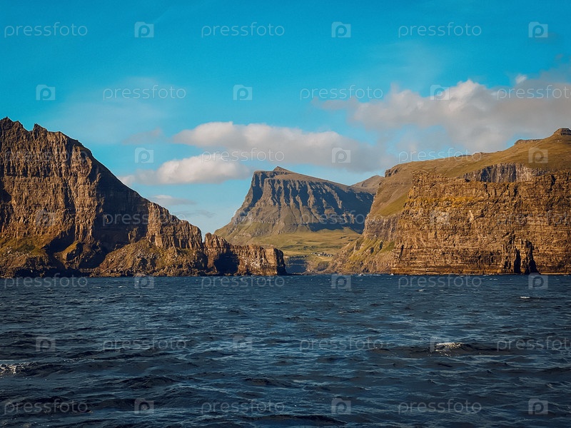 Впечатляющие крутые скалы окружают узкий канал, наполненный глубокими океанскими водами и изменяющимся светом