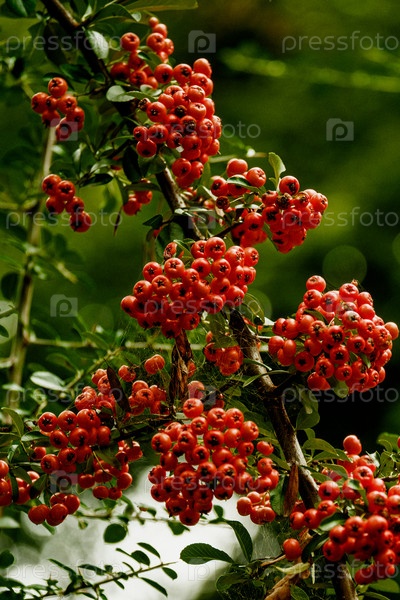 Рустическая сцена, демонстрирующая яркие красные ягоды среди зеленых листьев