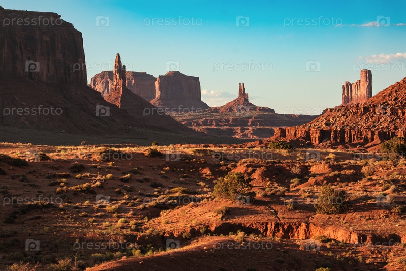 Потрясающая пустынная сцена Юты, демонстрирующая монументальные солнечные песчаные скалы и глубокие красные тени