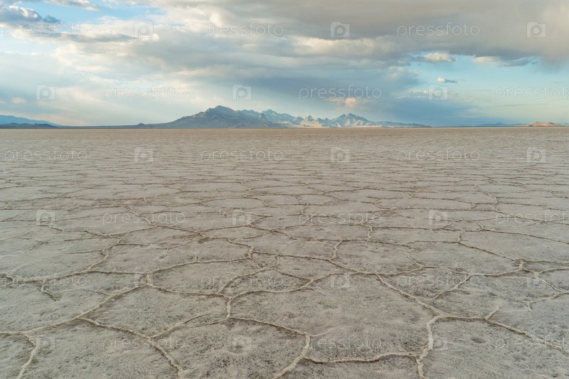 Огромная треснувшая поверхность соли в США с тихим пастельным небом и горным фоном для визуального исследования