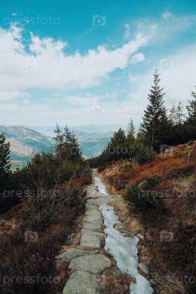Тихий пешеходный маршрут в чешских горах с красочной флорой и чистым небом