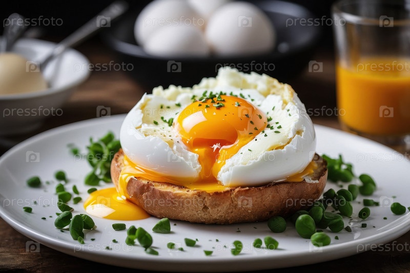 Генеративная Сварные яйца тарелка на столе, сердечный вкусный традиционный кулинарный бранч кухня закуска AI