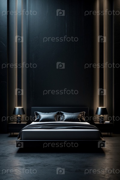 Уютный интерьер Спальня Квартирная комната Черный цвет, Комфортный дом Дизайн современного дома AI Generative