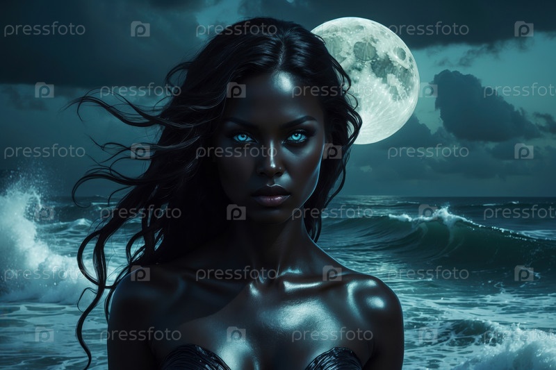 AI Generative Fantasy портрет молодой красивой женщины волшебная модель, русалка в море из сказки