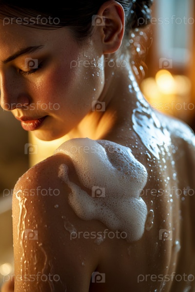 Женщина моется мылом из штанги натуральные органические ароматические косметические средства ручной работы пенообразование AI Generative