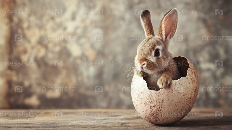 Пасхальный пейзаж, кролики с красочными яйцами и ромашками на лугу под прекрасным небом