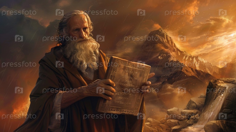Моисей несет каменные скрижали с написанными на них Десять заповедей