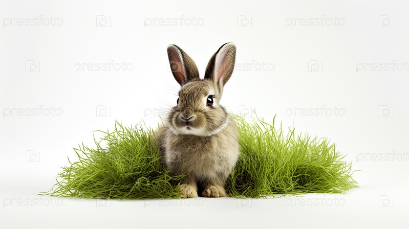 Пасхальный кролик на траве изолированный на белом фоне