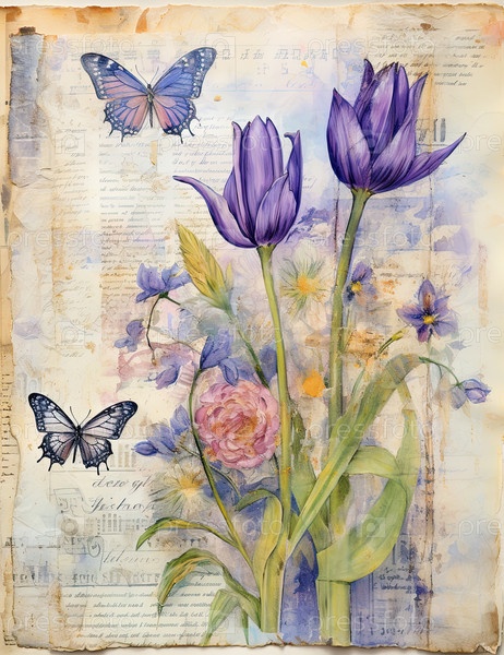 Пасхальный коллаж с винтажными изображениями пасхального кролика в цветах
