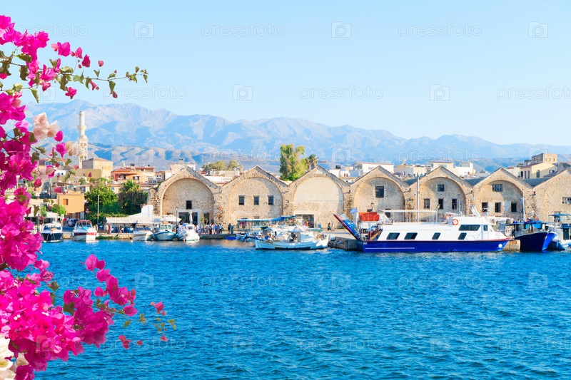 Венецианская гавань Хании с историческими домами в солнечный день, Крит, Греция