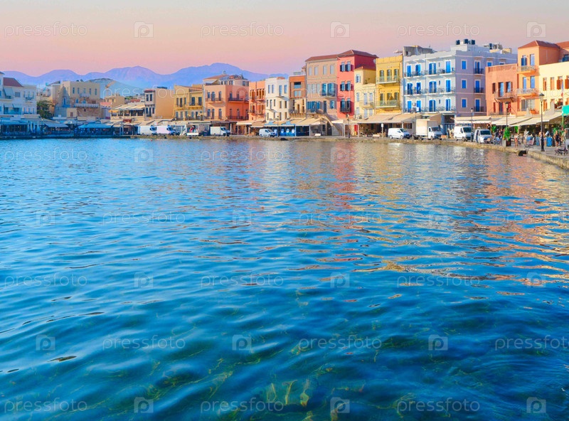 Венецианская гавань Хании с историческими домами в солнечный день, Крит, Греция