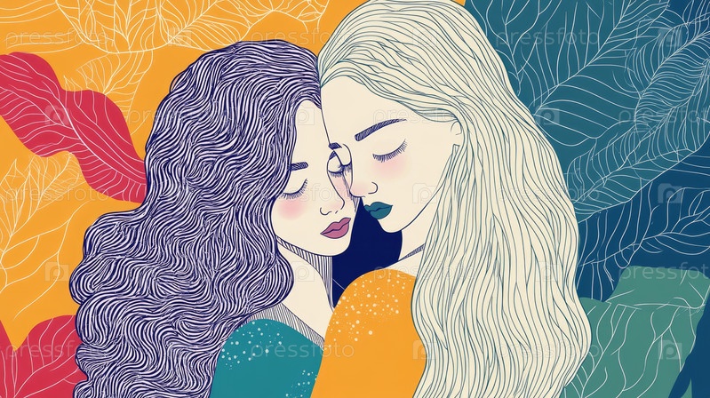 8 марта, Международный женский день.Женщины стоят вместе и поддерживают друг друга в линейном искусстве или стиле oultine
