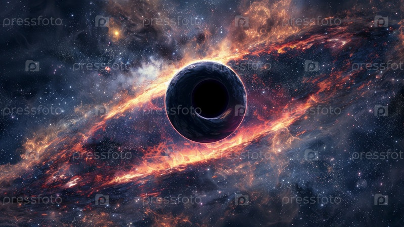Космический абстрактный фон, сверхмассивная черная дыра, суперновая звезда, галактика, звезды и космический газ