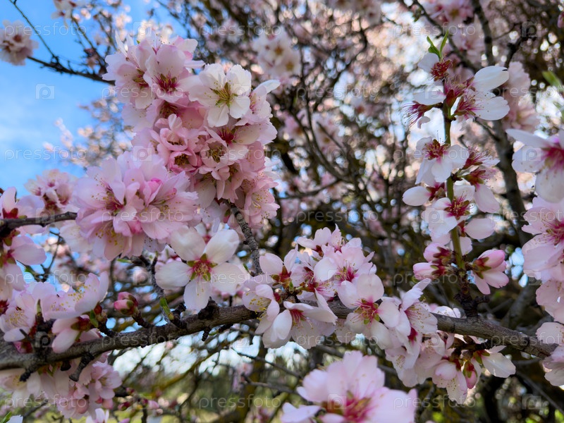 Розовое цветение миндального дерева, весенний праздник в Сантьяго-дель-Тейфде, Тенерифе