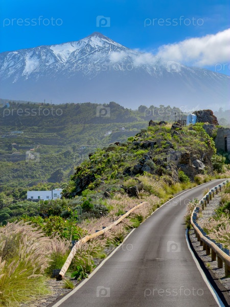 Дорога в экзотической долине вулкана Тейде, Тенерифе, Испания