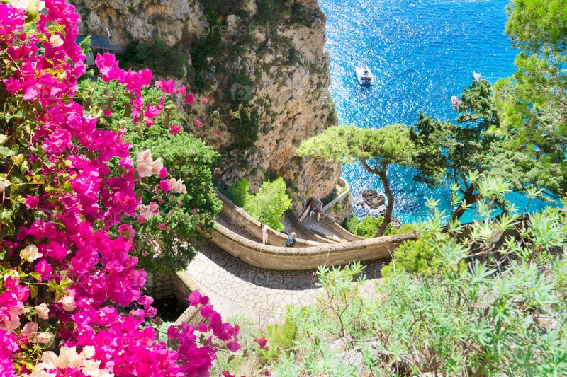 Виа Крупп винтажные лестницы к морю, остров Капри, Италия
