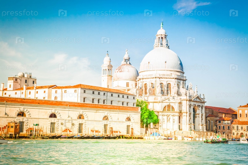 Вид на базилику Санта-Мария делла Салуте в солнечный день, Венеция, Италия
