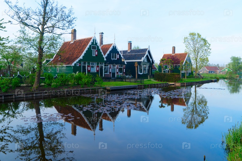 Деревенский голландский пейзаж небольшого старого города Заансе-Шанс, Нидерланды