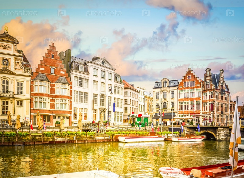 Гавань Graslei в старом городе, Гент