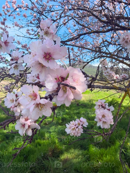 Розовое цветение миндального дерева, весенний праздник в Сантьяго-дель-Тейфде, Тенерифе
