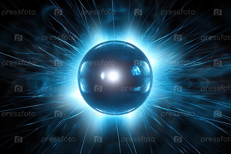 Большая металлическая сфера с электрическими лучами, сила гравитационной силы, возникающие большие лучи плазмы, которые высвобождают энергию во Вселенную